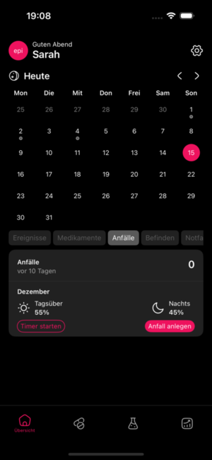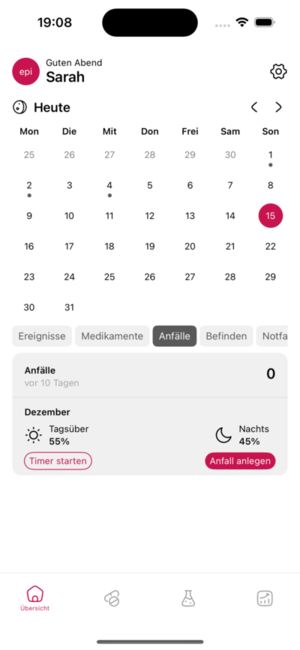 Zu den VideosSobald Du einen Anfall dokumentierst, wird der aktuelle Standort angezeigt und mit in die Daten übernommen. Natürlich nur, wenn Du das möchtest.